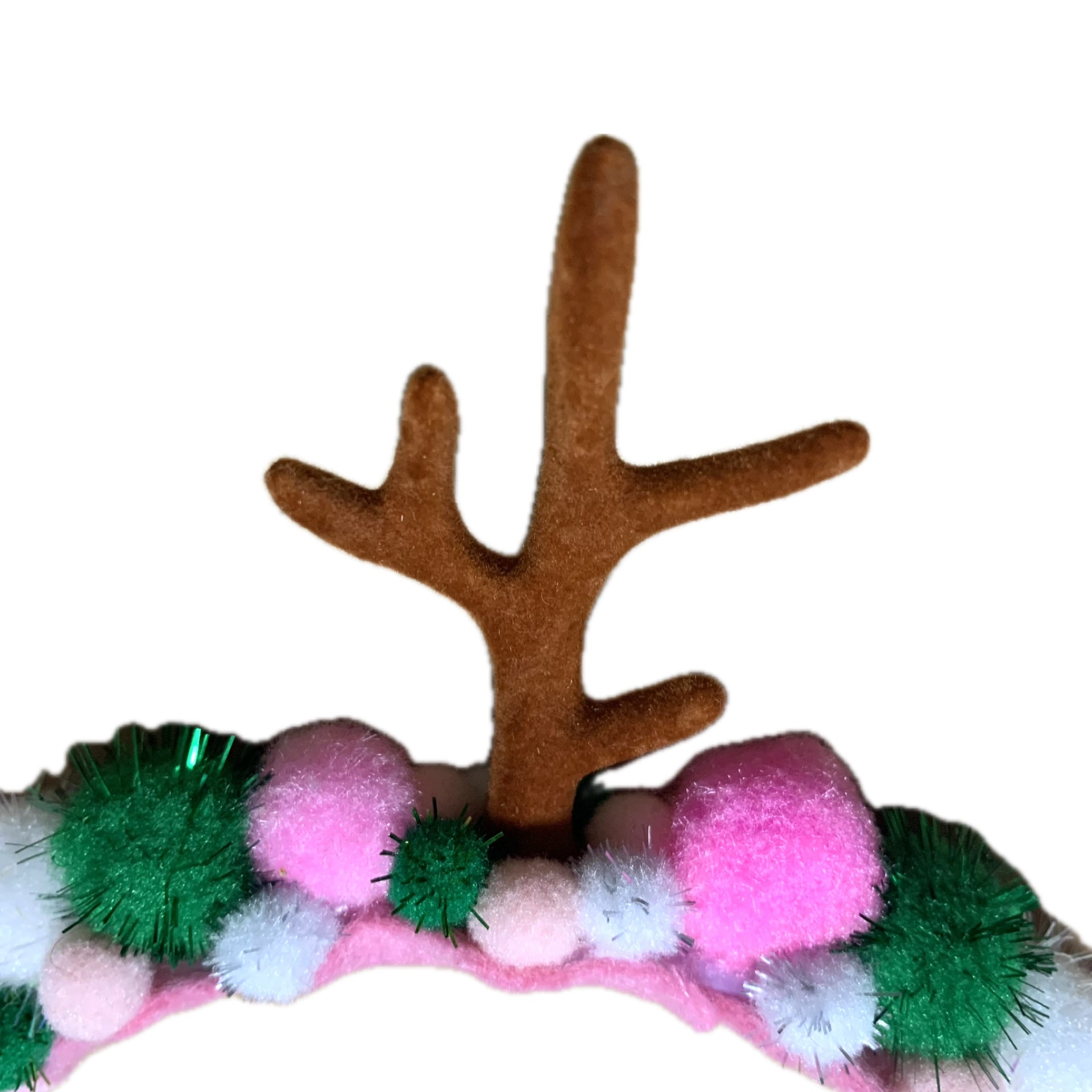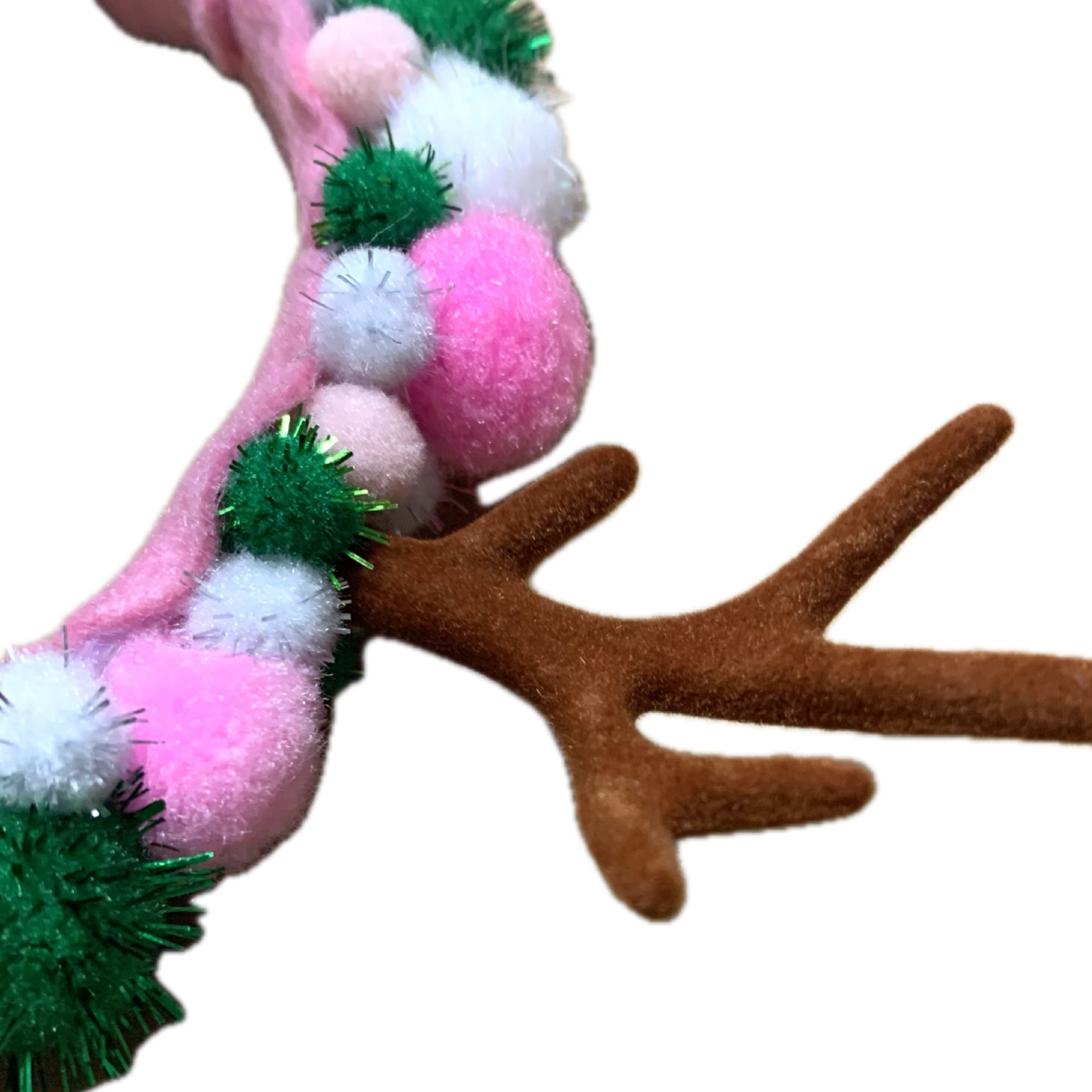 THIS BIRD HAS FLOWN- "PINK, WHITE & GREEN ANTLER HEADBAND" MEDIUM CHRISTMAS HEADBAND
