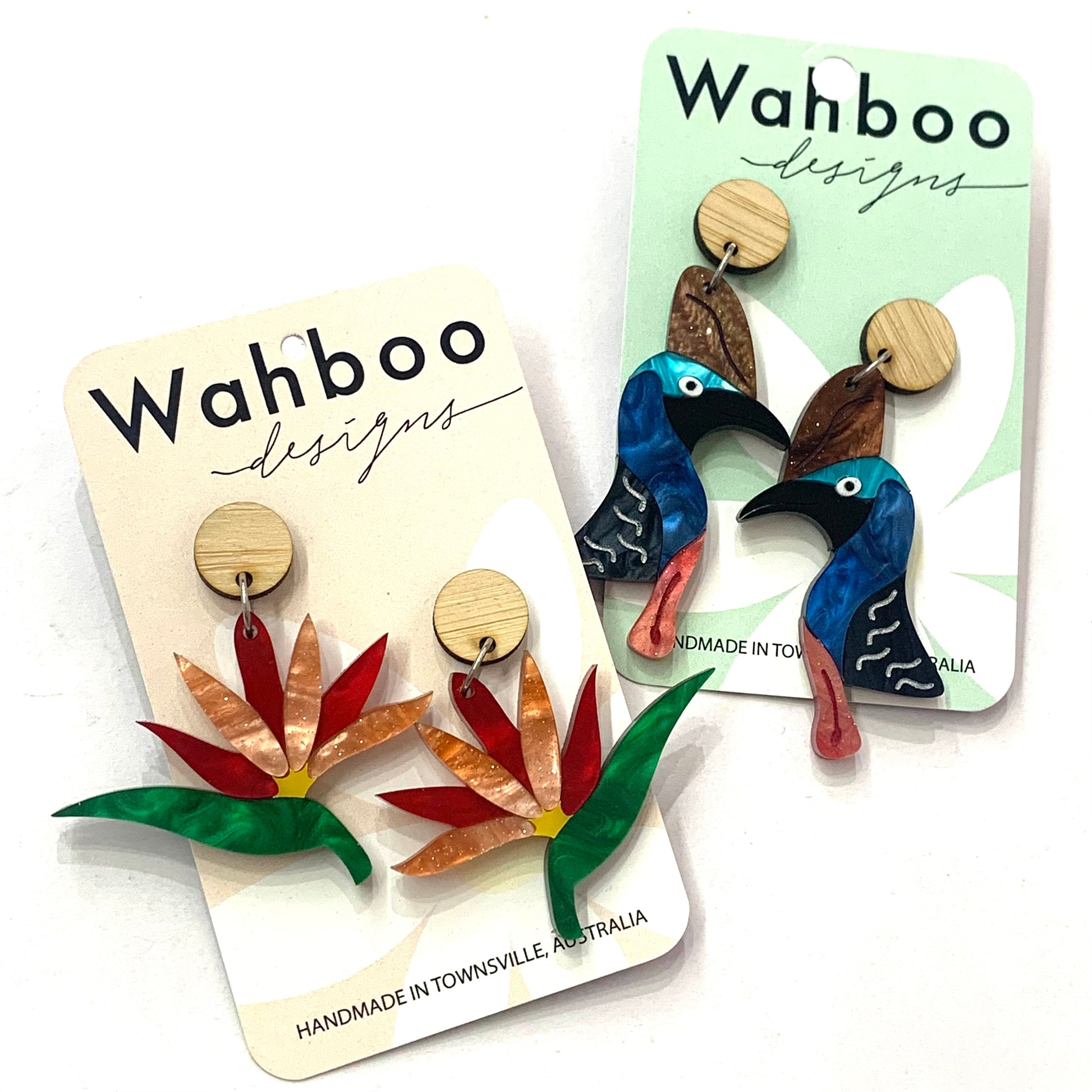 All Wahboo Designs jewellery is made with the highest quality surgical grade stainless steel materials, so they are ideal for sensitive ears and skin, plus they will not tarnish. Our timber products are all obtained from sustainable sources and we're currently looking at opportunities to recycle acrylic off cuts to reduce wastage. We can also guarantee there's a fair bit of love that goes into every piece of jewellery and accessory!
