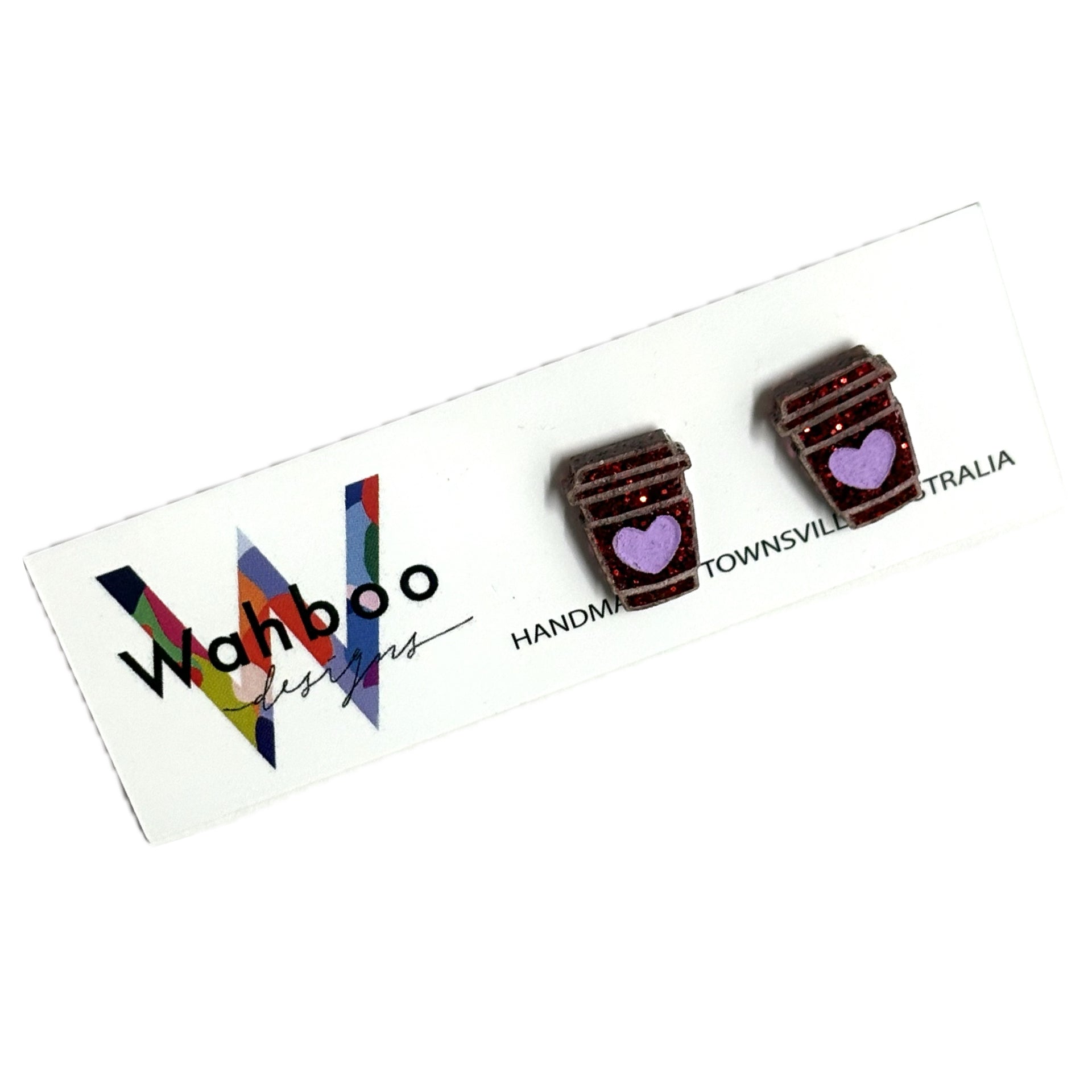 WAHBOO- Coffee Takeaway Cup Stud Earrings - Red and Purple
