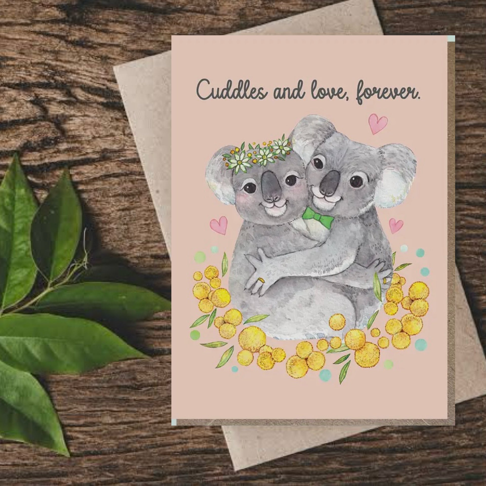 WATERCOLOURS BY CAT- "Cuddles and Love Forever"- Koala Wedding Card