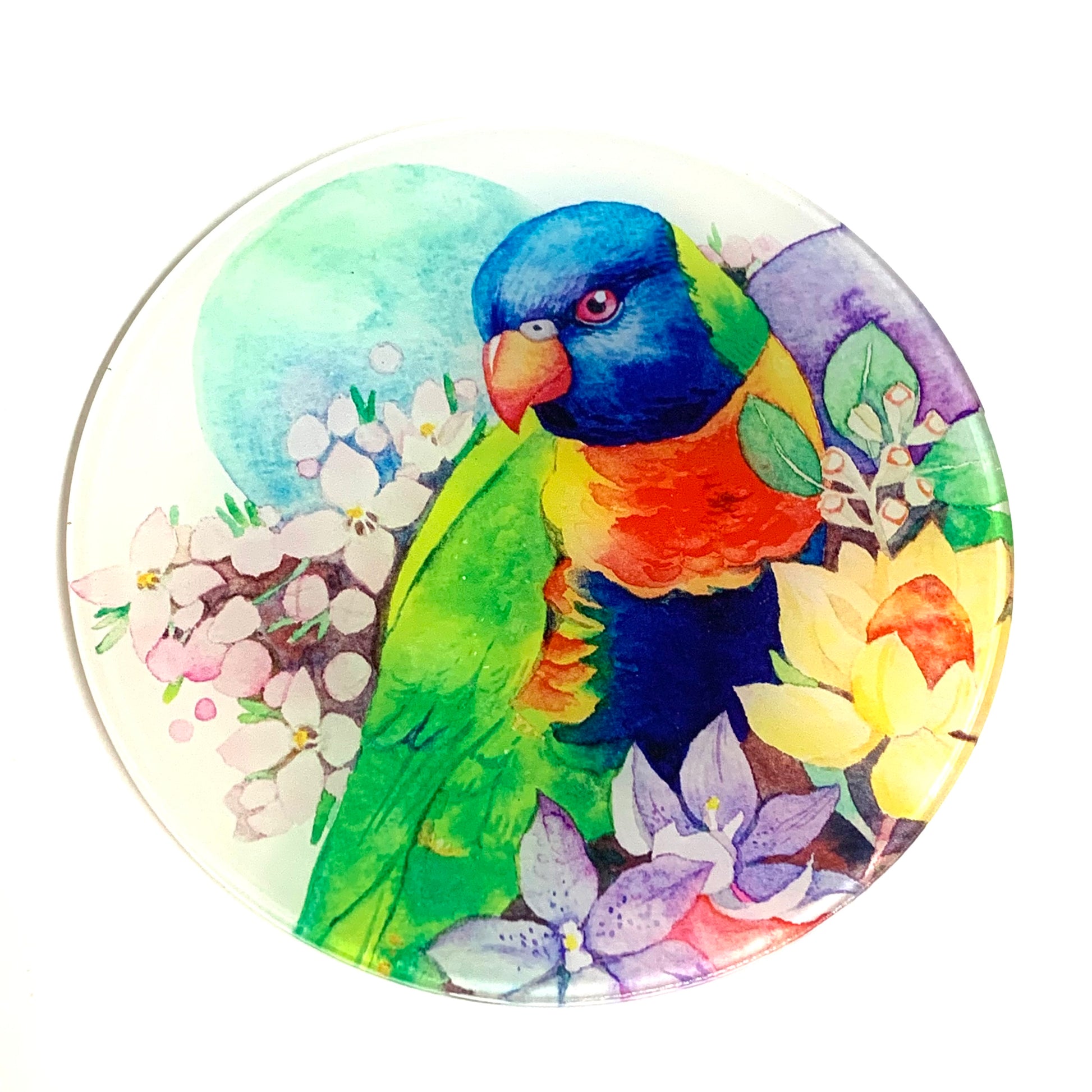 WATERCOLOURS BY CAT- Rainbow Lorikeet- Australian Bird Art Coaster