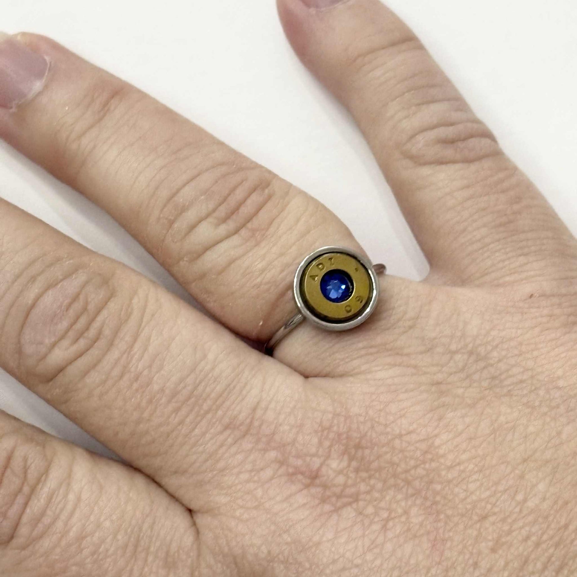 WILD BRASS- Adjustable Rings- Dark Blue Swarovski Crystal