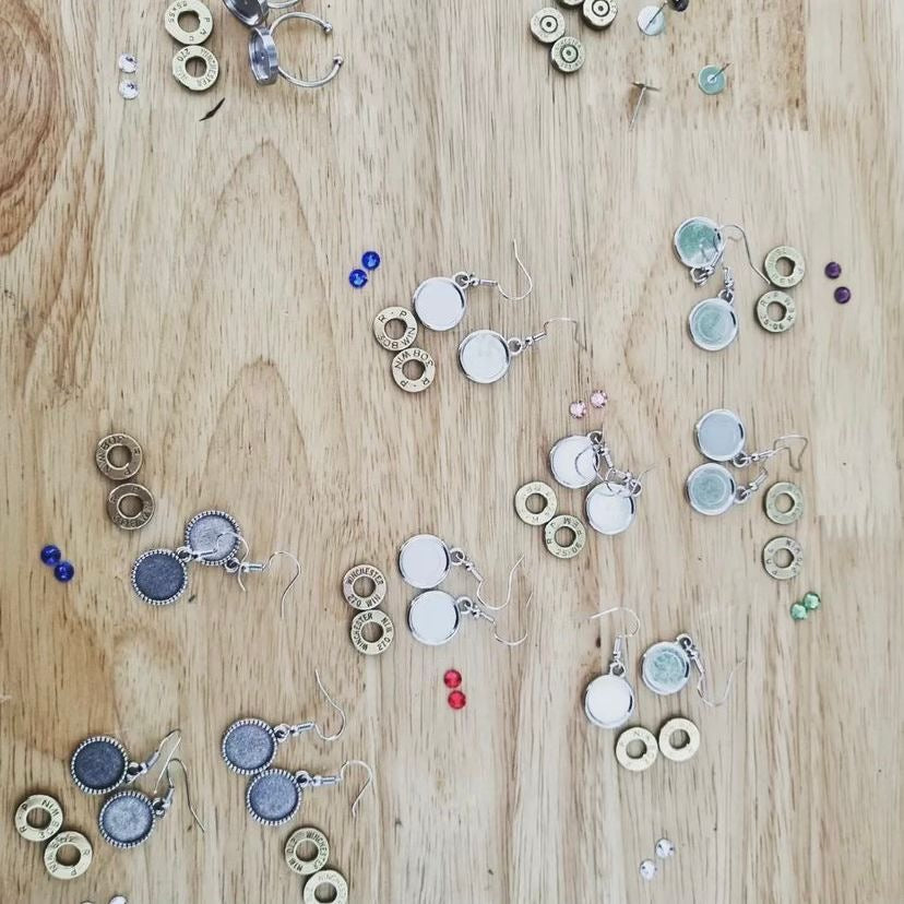 PLEASE NOTE: The maker uses various different Calibres and brands of ammunition depending on what she has access to. Due to earrings being made from recycled ammunition casings, some faces may have minor defects in the metal. The maker takes great care to make sure each pair of earrings are free from visible defects, however some small blemishes in the metal may be present, this is the joy and nature of handmade products.
