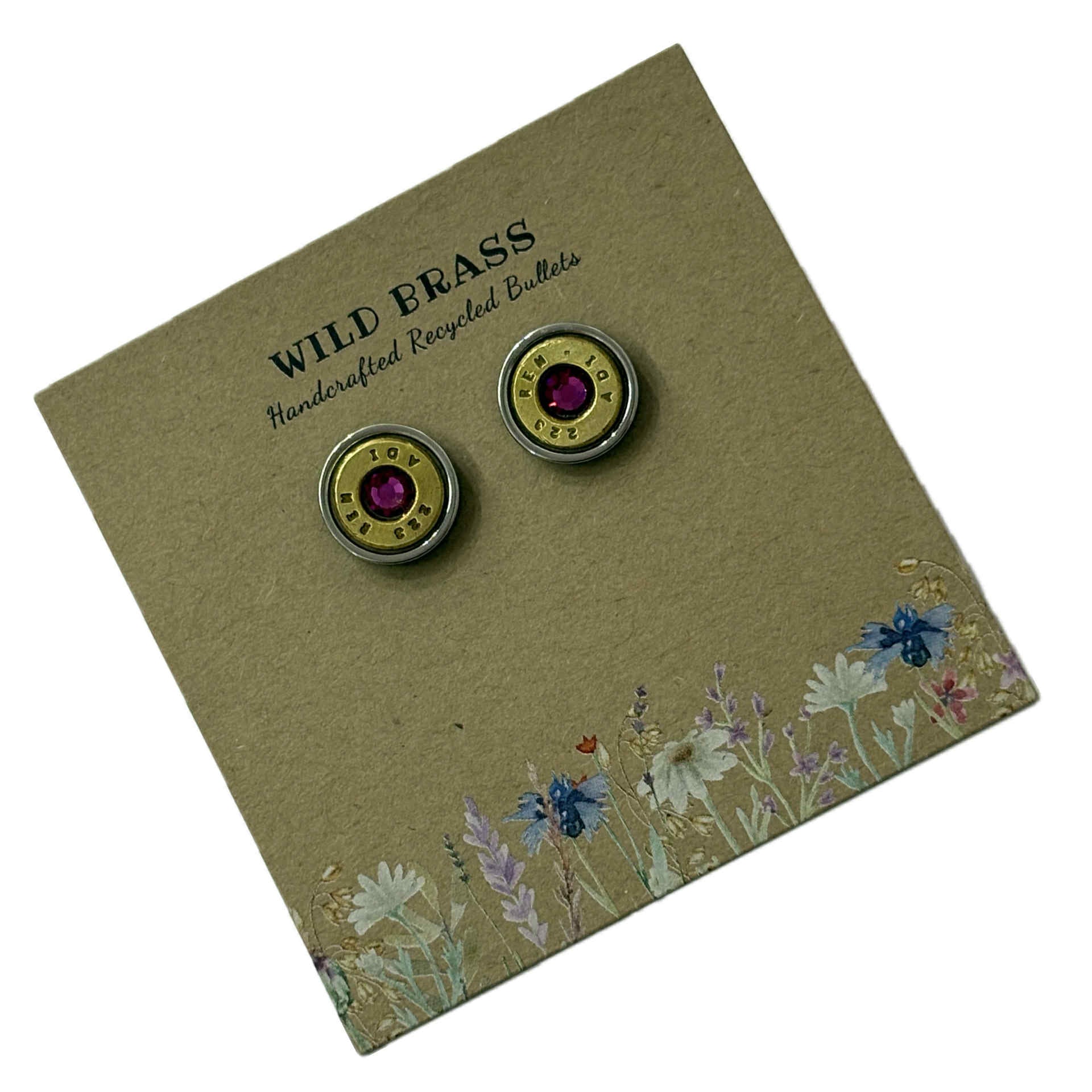 WILD BRASS- Medium Studs- Dark Pink Swarovski Crystal