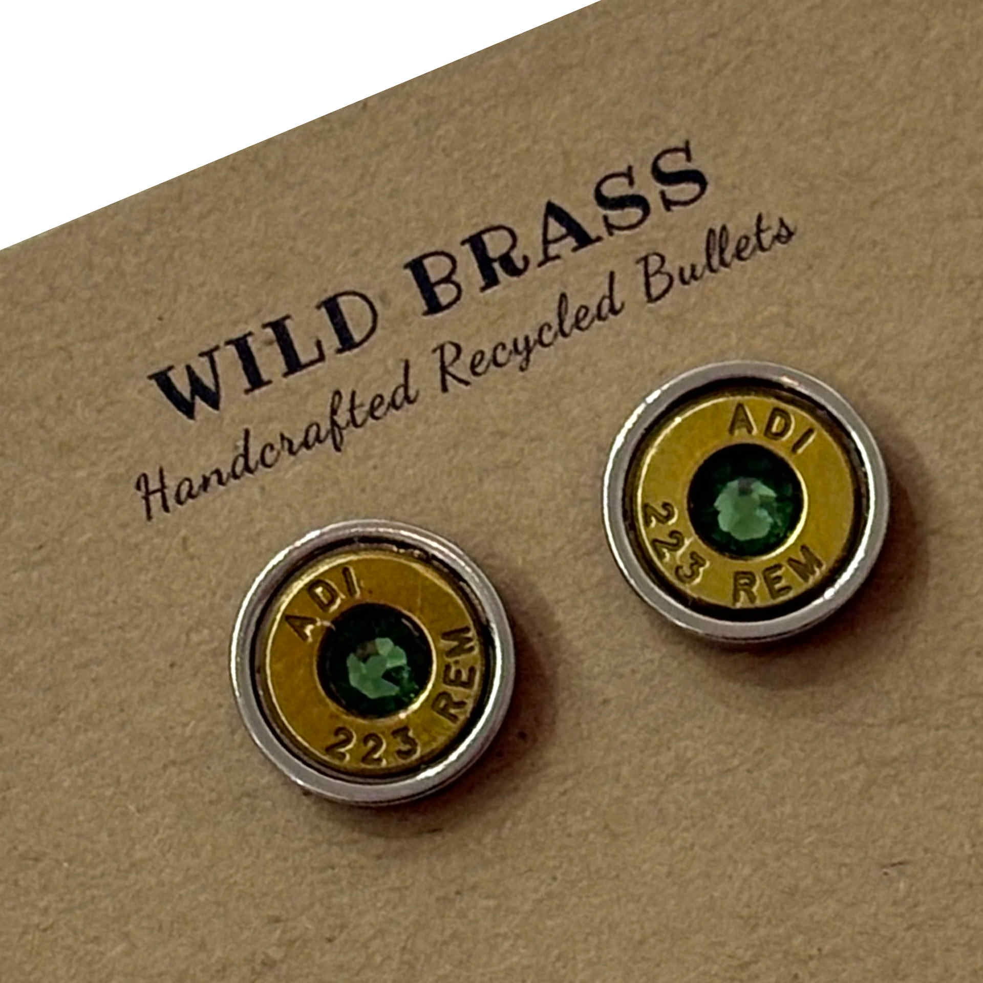 WILD BRASS- Medium Studs- Dark Green Swarovski Crystal