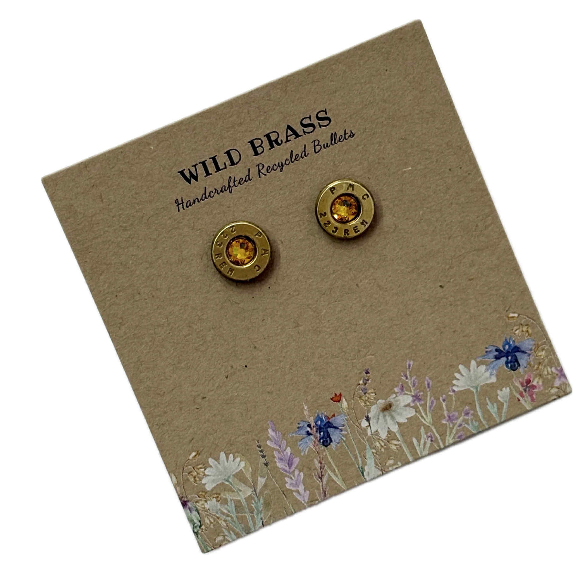 WILD BRASS- Small Studs- Yellow Swarovski Crystal